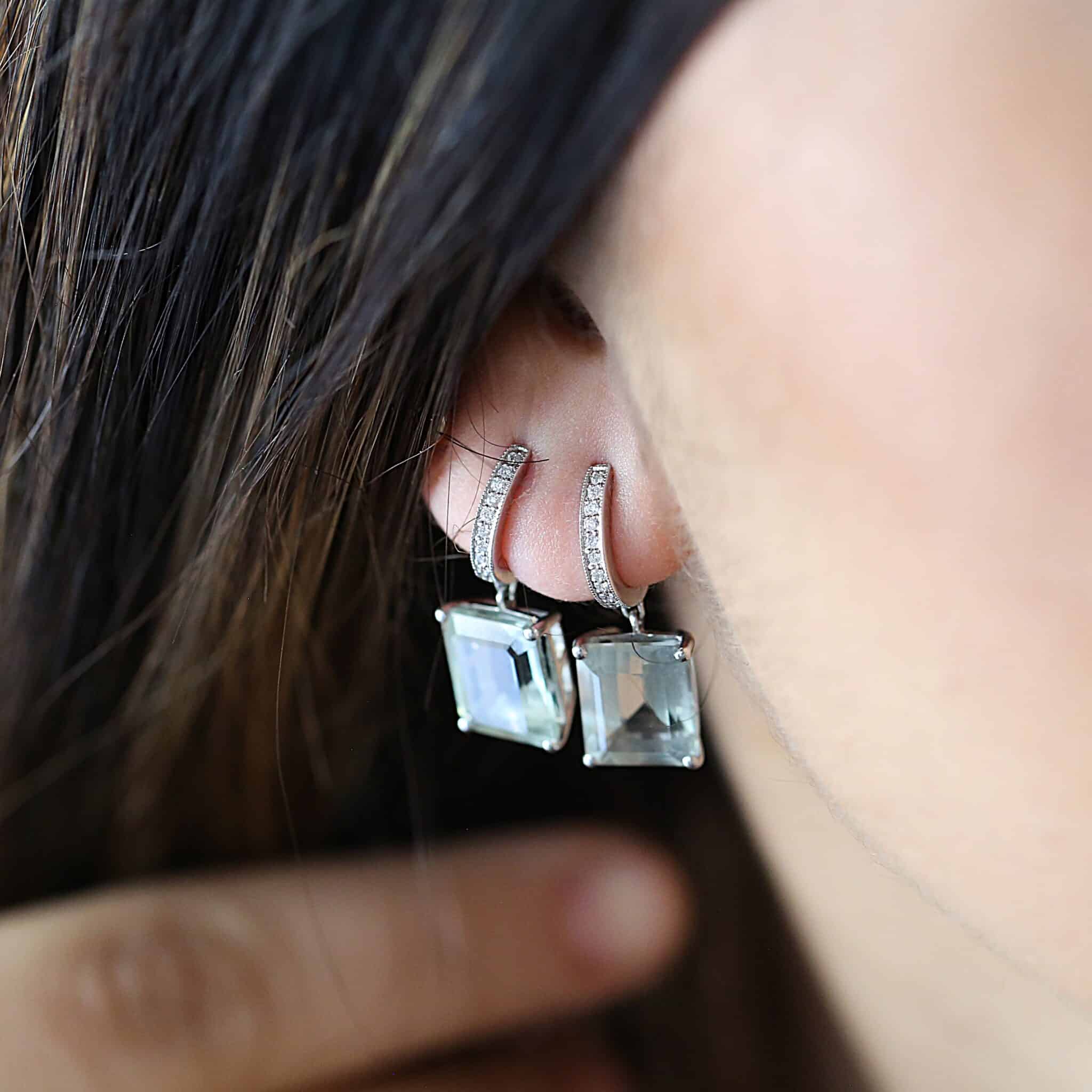 Elegant og enestående øreringene, med lysegrøn ametyst.