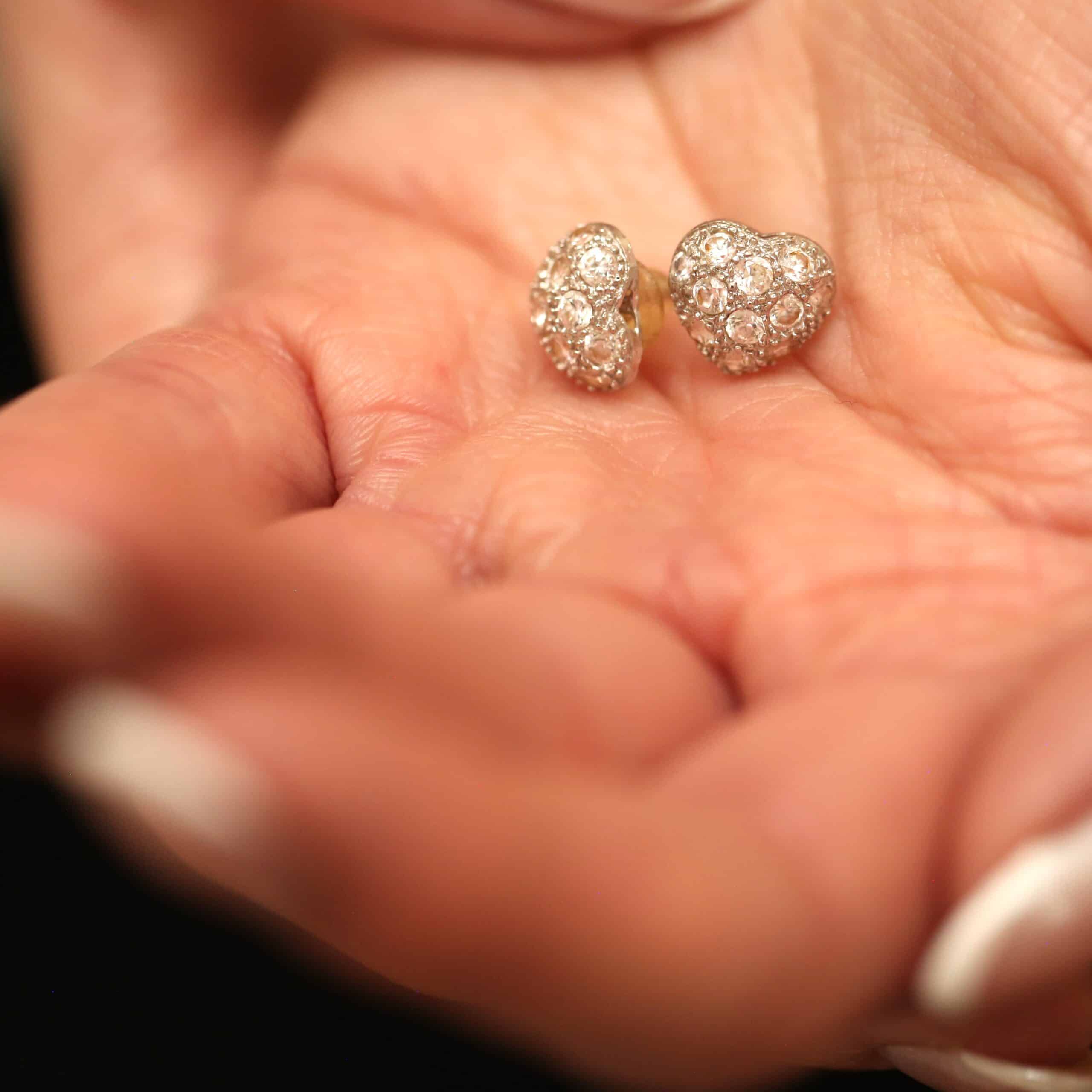 Design: Hjerteformede øreringe med funklende diamanter
